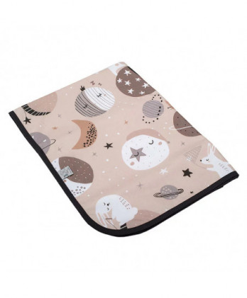 Κάλυμμα αλλαγής πάνας με σχέδιο πλανήτες σε καφέ ανοιχτό χρώμα, βαμβακερό αδιάβροχο κάλυμμα για την αλλαγή της πάνας του μωρού σας. Σε πρακτικό μέγεθος, για να το έχετε πάντοτε μαζί σας. Είναι ένα απαραίτητο αξεσουάρ για τη φροντίδα του μωρού σας στις καθημερινές σας εξορμήσεις. Είναι χειροποίητο και ραμμένο με δύο διαφορετικά υφάσματα στις πλευρές του. Από τη μία του πλευρά, έχει βαμβακερό ύφασμα και από την άλλη σελτέ, ένα υλικό αδιάβροχο με πετσετέ υφή, ιδανικό για να κρατάει την υγρασία και, ταυτόχρονα, ιδιαίτερα μαλακό για το ευαίσθητο δερματάκι του μωρού σας.