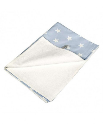Κάλυμμα αλλαγής πάνας με σχέδιο λευκά αστεράκια σε μπλε χρώμα, βαμβακερό αδιάβροχο κάλυμμα για την αλλαγή της πάνας του μωρού σας. Σε πρακτικό μέγεθος, για να το έχετε πάντοτε μαζί σας. Είναι ένα απαραίτητο αξεσουάρ για τη φροντίδα του μωρού σας στις καθημερινές σας εξορμήσεις. Είναι χειροποίητο και ραμμένο με δύο διαφορετικά υφάσματα στις πλευρές του. Από τη μία του πλευρά, έχει βαμβακερό ύφασμα και από την άλλη σελτέ, ένα υλικό αδιάβροχο με πετσετέ υφή, ιδανικό για να κρατάει την υγρασία και, ταυτόχρονα, ιδιαίτερα μαλακό για το ευαίσθητο δερματάκι του μωρού σας.