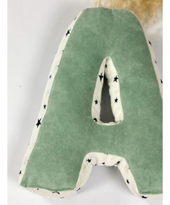 Παιδικό Διακοσμητικό Μαξιλάρι Μονόγραμμα Σε Βεραμάν – Λευκό Χρώμα Και Μαύρα Αστεράκια