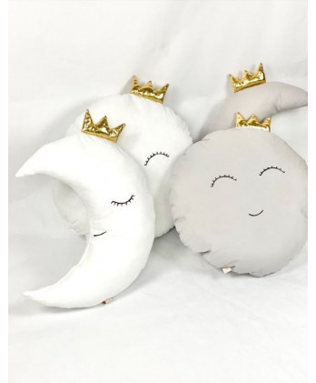 Παιδικό Διακοσμητικό Μαξιλάρι Στρογγυλό Φεγγάρι Γκρι Και Χρυσό Στέμμα