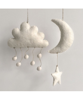 Κρεμαστό Στολίδι Φεγγάρι Και Αστέρι Λευκό Φέλτ 25,5εκ