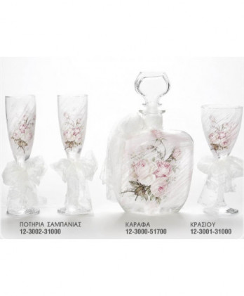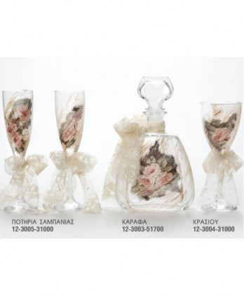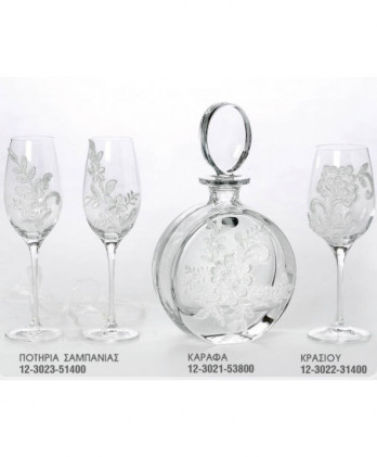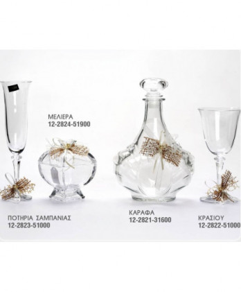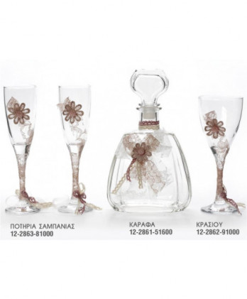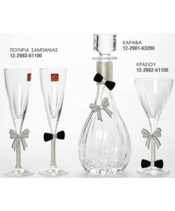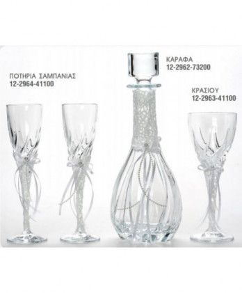 Ιδιαίτερα σετ γάμου που περιλαμβάνουν ανοξείδωτους, επάργυρους και ασημένιους δίσκους, κρυστάλλινες στολισμένες καράφες και κρυστάλλινα ποτήρια κρασιού ή σαμπάνιας σε μεγάλη ποικιλία ώστε να ταιριάξουν με την διακόσμηση που θα επιλέξετε.