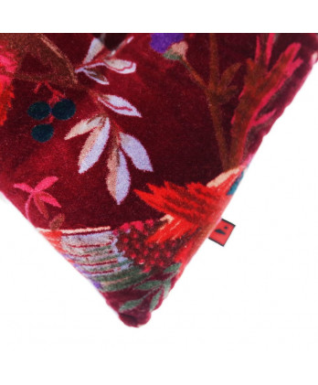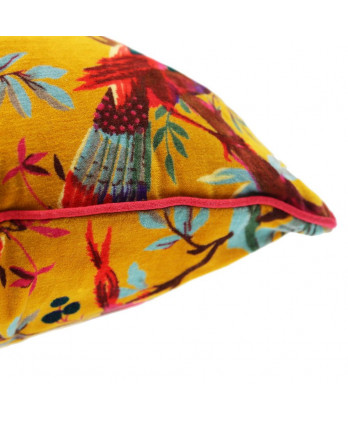 Βελούδινο φούξια μαξιλάρι με σχέδιο τα παραδείσια πουλιά που είναι κλασσικό σχέδιο του γνωστού σχεδιαστή William Morris και η επιτομή της φιλοσοφίας που πρέσβευε.