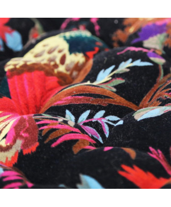 Βελούδινο μαύρο μαξιλάρι καρέκλας με σχέδιο τα παραδείσια πουλιά που είναι κλασσικό σχέδιο του γνωστού σχεδιαστή William Morris και η επιτομή της φιλοσοφίας που πρέσβευε.