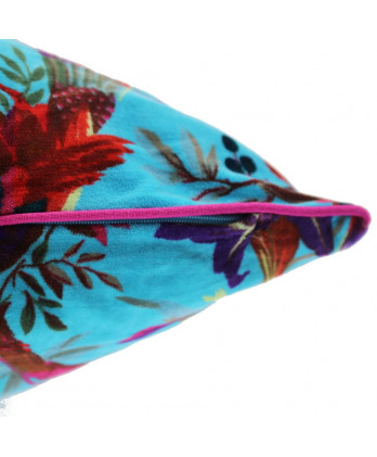 Βελούδινο τυρκουάζ μαξιλάρι με σχέδιο τα παραδείσια πουλιά που είναι κλασσικό σχέδιο του γνωστού σχεδιαστή William Morris και η επιτομή της φιλοσοφίας που πρέσβευε.
