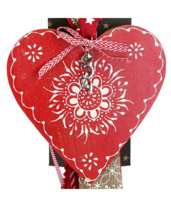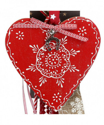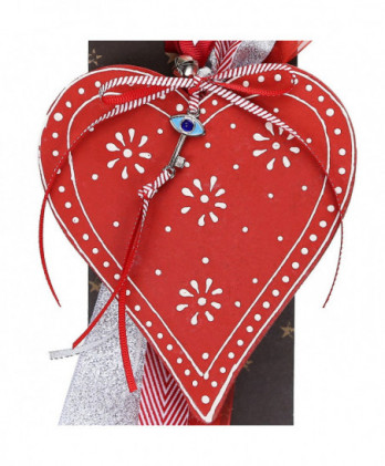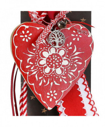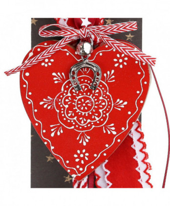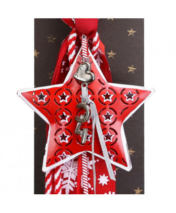 Χειροποίητο γούρι με ένα αστέρι μεταλλικό διπλής όψης σε λευκά και κόκκινα σχέδια, διάτρητο με μικρά αστεράκια. Διακοσμημένο με μεταλλικό στοιχείο καρδιά love, για καλή τύχη και υπέροχες κορδέλες και κορδόνια εξαιρετικής ποιότητας.