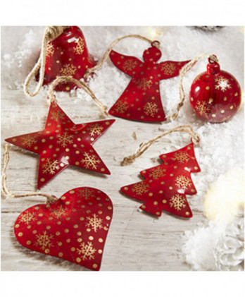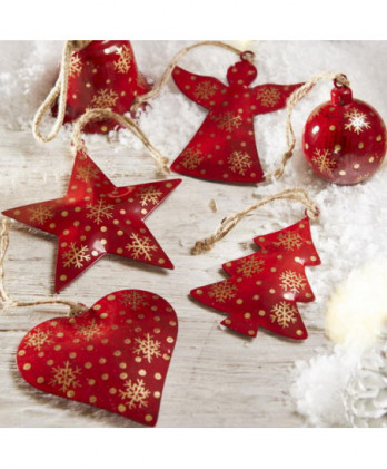 Παραδοσιακό μεταλλικό vintage χριστουγεννιάτικο δέντρο σε αντικέ κόκκινο με χρυσές νιφάδες. Ένα vintage στολίδι που μας ταξιδεύει πίσω στο χρόνο με νιφάδες ζωγραφισμένες στο χέρι και κορδόνι από γιούτα. Κρεμάστε την στο δέντρο ή στολίστε κάποιο έπιπλο ή τοίχο του σπιτιού σας.