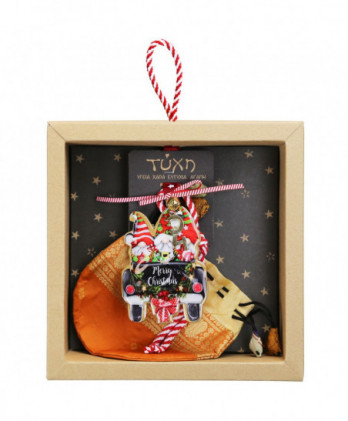 Χειροποίητο γούρι με μεταλλικό στολίδι αυτοκίνητο πολύχρωμο, διπλής όψης και χρυσό τελείωμα. Συνοδεύεται από χειροποίητο μεταξωτό πουγκί φτιαγμένο στο Νεπάλ από ανακύκλωση σάρι και θα το παραλάβετε σε ένα υπέροχο κουτί δώρου από ανακυκλωμένο χαρτί.