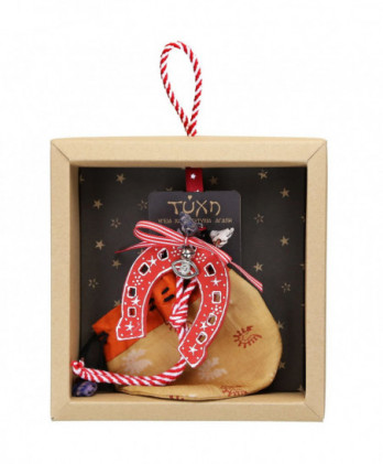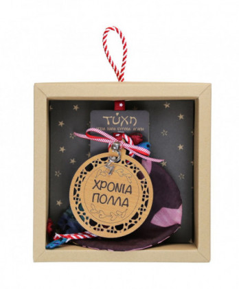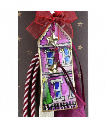 Χειροποίητο γούρι με ένα ζωγραφισμένο μεταλλικό σπιτάκι διπλής όψης σε παραμυθένιες μωβ λιλά αποχρώσεις. Μοναδικές κορδέλες και κορδόνια εξαιρετικής ποιότητας ολοκληρώνουν αυτό το όμορφο γιορτινό γούρι.