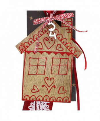 Γούρι Με Ζωγραφιστό Κόκκινο Σπιτάκι Απο Ξύλο 30x19εκ