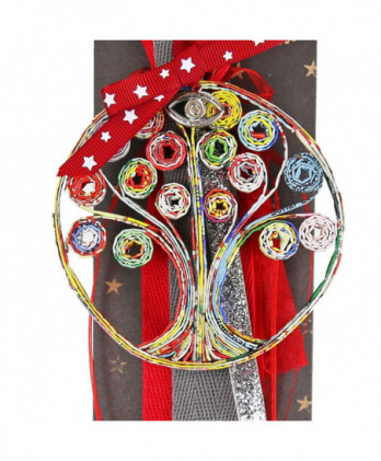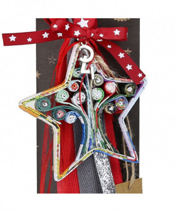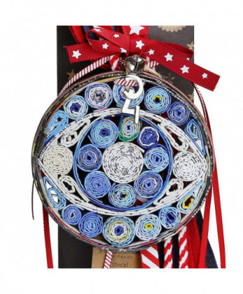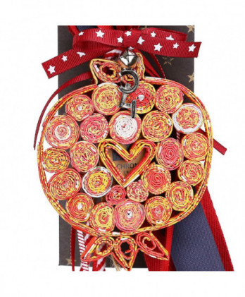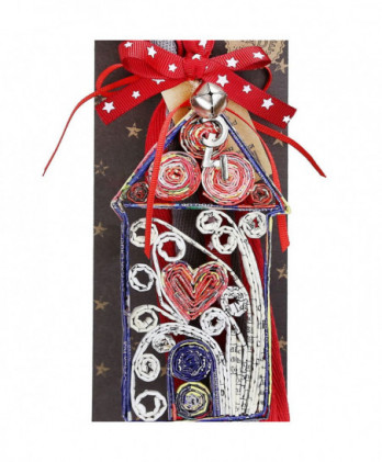 Εξαιρετικό χειροποίητο γούρι με σπίτι απο ανακυκλωμένα περιοδικά, φτιαγμένο με την τεχνική κουίλινγκ. Οι τεχνίτες διπλώνουν με υπομονή περιοδικά και εφημερίδες και σχηματίζουν πρωτότυπα διακοσμητικά αντικείμενα. Τα στολίδια έχουν μικρές διαφορές μεταξύ τους επειδή πρόκειται για χειροποίητα προϊόντα.