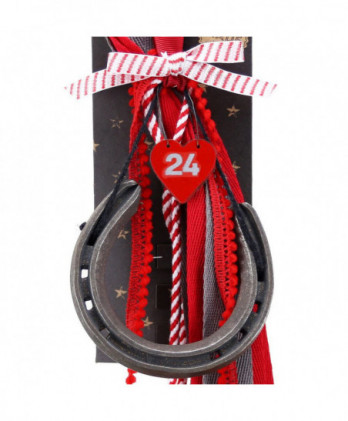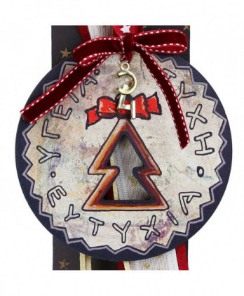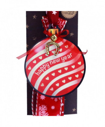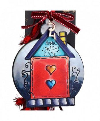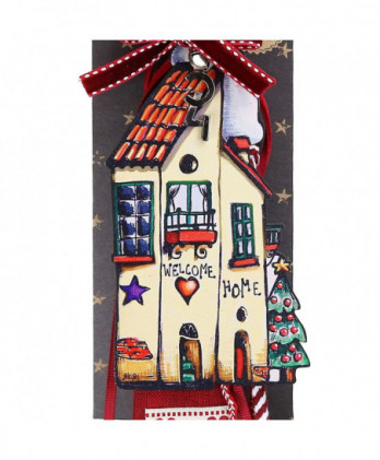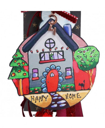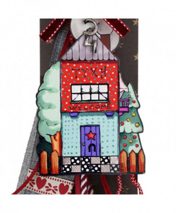 Χειροποίητο γούρι με ένα παραμυθένιο ξύλινο σπίτι με ευχές ζωγραφισμένο από την synchronia. Οι κόκκινες κορδέλες και τα κορδόνια κάνουν ένα έντονο κοντράστ με εντυπωσιακό αποτέλεσμα.