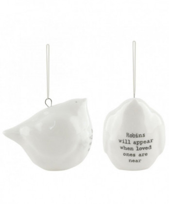 Πολύ ιδιαίτερο κρεμαστό στολίδι, robin από λευκή πορσελάνη, χειροποίητο και σχεδιασμένο από την East of India.